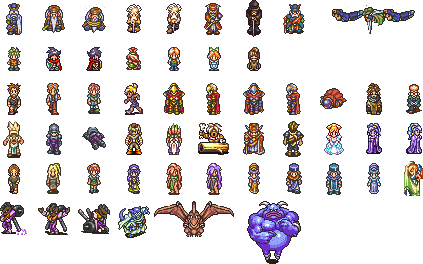 These images really comprise a massive make-up of every single emulated character image (sprite) available. These sprites have come straight from the Chrono Series Database website and serve as a great last resort if you're desperate for a particular character image (would have to be cut from the sprite and edited for transparency, etc.).